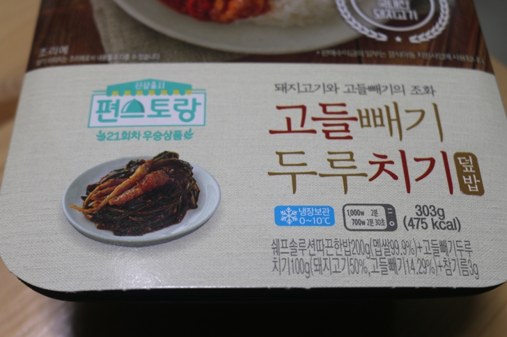 편의점에 가보니 한동안 어쩌다보니 편스토랑 방송을 보지 못해서 맛보지 못하고 지나가버린 먹을거리들이 많이 있네요. 그 중에서 무엇을 먹어볼까?하다가 편스토랑 21회차 우승상품인 고들빼기 두루치기덮밥을 구매했습니다.