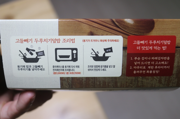 일단 조리를 하기전에 고들빼기 두루치기 소스(?)를 조금 맛보았는데 데우지 않은 상태였지만 제 예상을 뛰어넘게 맛있습니다. 데워서 밥에 비비면 훨씬 맛있을것 같습니다.