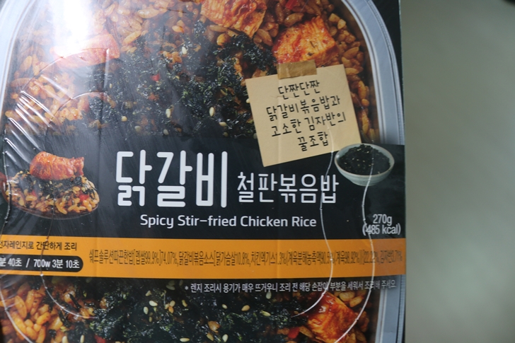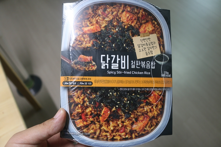 얼마 전 낚시 갔다가 집에 돌아와서 보니 집에 밥이 없길래 간단히 점심을 먹으려고 편의점에 갔는데 그날따라 김밥이며 도시락들이 남아있는 게 별로 없어서 뭘 먹어볼까? 고민하다가 한편에 놓인 닭갈비 철판볶음밥이 겉보기에 맛있어 보여 하나 구매해봤습니다.