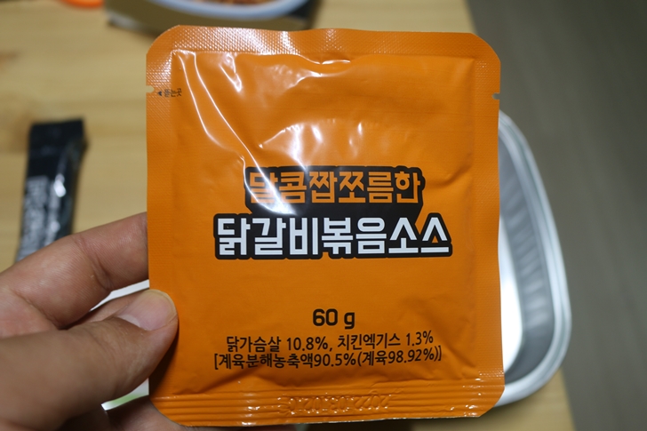역시나 제 예상대로 닭갈비 볶음 소스에 닭갈비 조각 같은 건 전혀 보이질 않습니다. 간간히 닭가슴살 조각이라고 보이는 것들이 보이기는 하는데 좀 아쉽습니다.