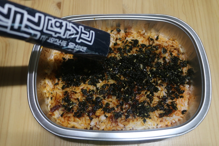데워진 밥에다가 고소한 김자반을 넣습니다. 김자반의 양은 많은 편이라서 이건 마음에 드네요.