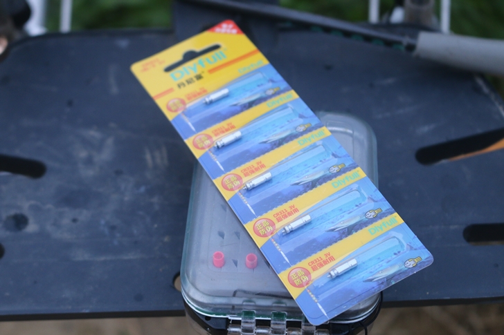 지난 밤에 4짜 붕어를 낚은 찌입니다. 제일 왼쪽에 약간 맹탕같은 부분이 있어서 그곳에 넣어둔 찌인데 정말 멋지게 올려줬습니다.