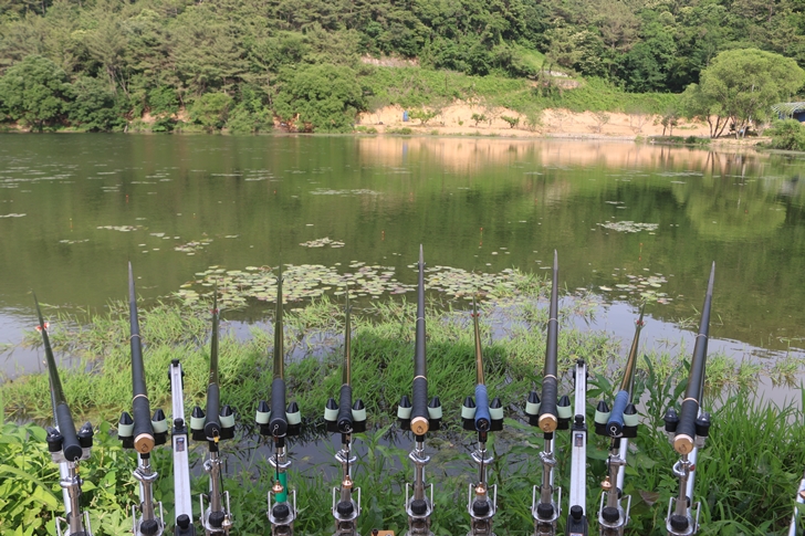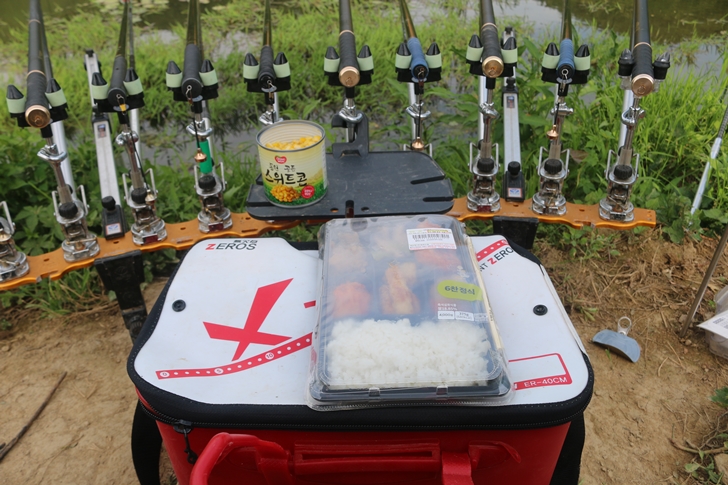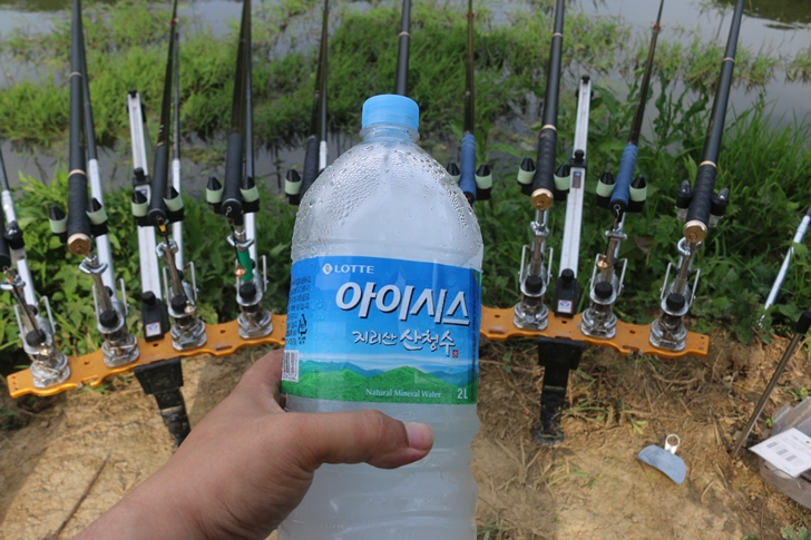시원한 얼음물을 마시면서 있다보니 오른쪽에 빈공간이 허전해서 낚시대 한대를 더 폈습니다. 붕어를 잘 못 낚다보니 자꾸 욕심이 생기네요. ㅎㅎ