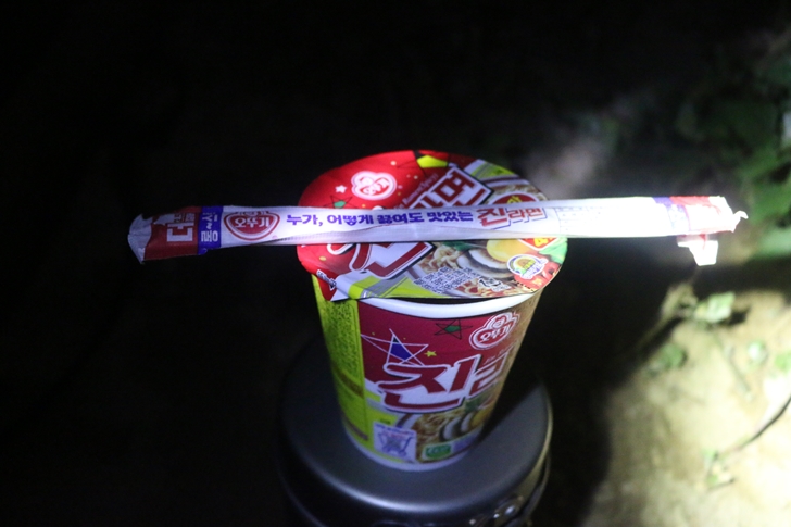 자정이 다 되어가는데 찌는 꼼짝도 하질 않습니다. 꼼짝도 하지 않는 찌를 보고 있자니 졸리기도 하지만 저녁을 일찍 먹어서 그런지 배가 출출하네요. 일단 컵라면 먹고 좀 자다가 새벽에 일어나서 낚시를 해야할 것 같습니다.