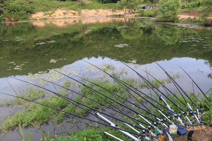 햇살이 물에 반사되어 뜨겁네요. 한 걸음 뒤로 물러나서 파라솔 그림자 밑에서 혹시나 하는 입질을 기다려보지만 이제는 낮에 입질이 오는 패턴이 바뀐듯합니다. 그래도 4짜붕어를 낚았으니 만족합니다.