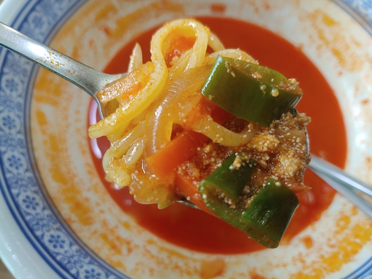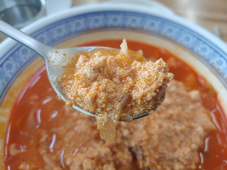 일단 국물부터 살짝 맛보니 진하고 자극적인 매운맛을 원하시는 분들은 조금 실망하실 수 있겠지만 알이 들어있어서 그런지 고소하면서 살짝 얼큰한 맛이 나네요.