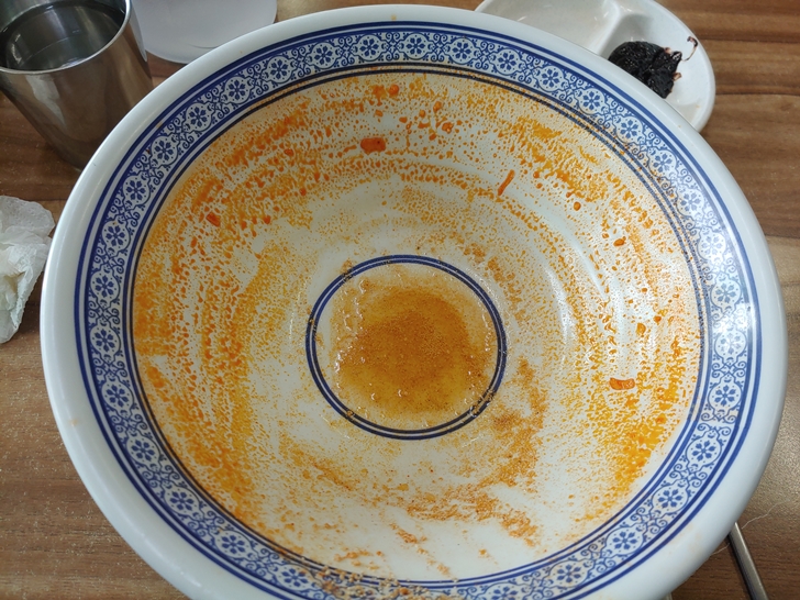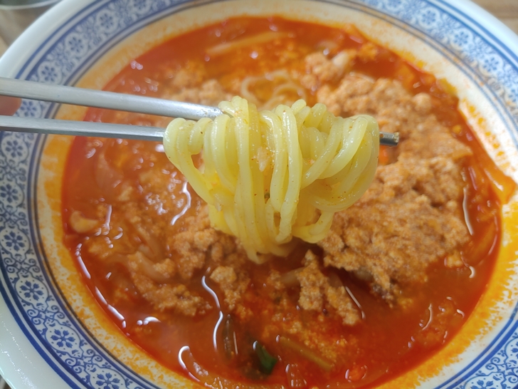 그리고 면을 집어서 먹어보니 짬뽕 느낌의 맛입니다. 전체적으로 짬뽕과 알탕의 그 중간쯤 어딘가의 맛인 것 같은데 색다르기는 하지만 정말 맛있습니다. 왜 많은 사람들이 비룡짬뽕에 알탕짬뽕을 먹으러 찾아오는지 알것 같습니다.