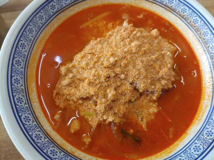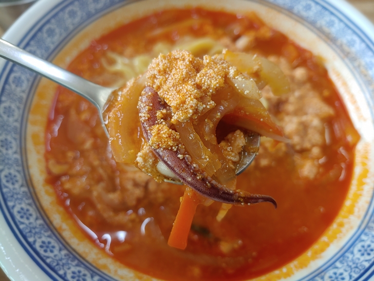 좀 기다리니 제가 주문한 비룡짬뽕의 알탕짬뽕이 나왔습니다. 국물 위로 뭔가가 수북히 쌓여있는데 자세히 보니 알이 듬뿍 들어있습니다.