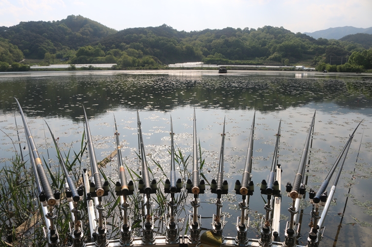 해가 서쪽 산에 걸치기 시작하니 보트낚시하시는 분들이 슬슬 밤낚시를 준비하기 시작했습니다. 보트꾼들에게 물어보니 하룻밤에 한두번 입질이 들어왔다고 하니 살짝 기대가 됩니다.